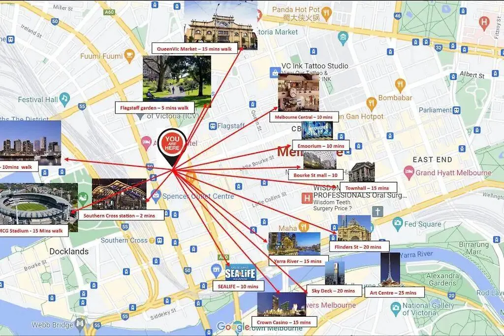 Boendet ligger 11 minuters promenad från Melbourne Aquarium. Om Vegetarian och Rej's Cafe & Kebabs kan nås inom 5 minuters gångavstånd. Lägenheten är belägen intill St James Old Cathedral.